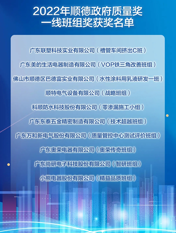 获得“2022年顺德政府质量奖一线班组奖”,是政府对太阳集团电气在创建先进质量管理模式、推行先进质量理念、践行科学质量管理方法等方面的高度肯定。接下来,我司将继续学习借鉴先进质量管理经验,不断强化质量意识,持续提升质量管理水平,为顺德建设质量强区、建设高质量发展先行示范区作出新的贡献。